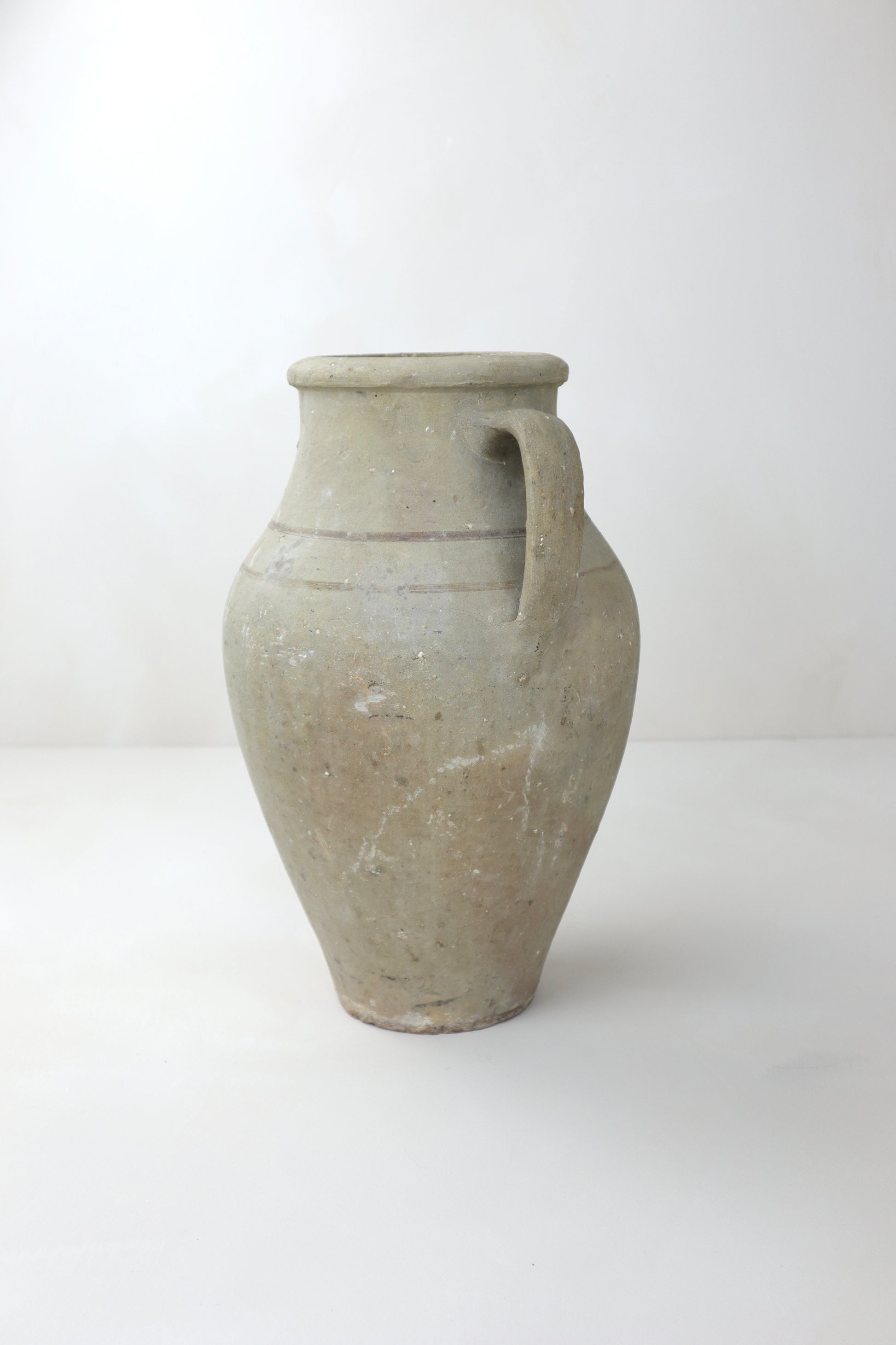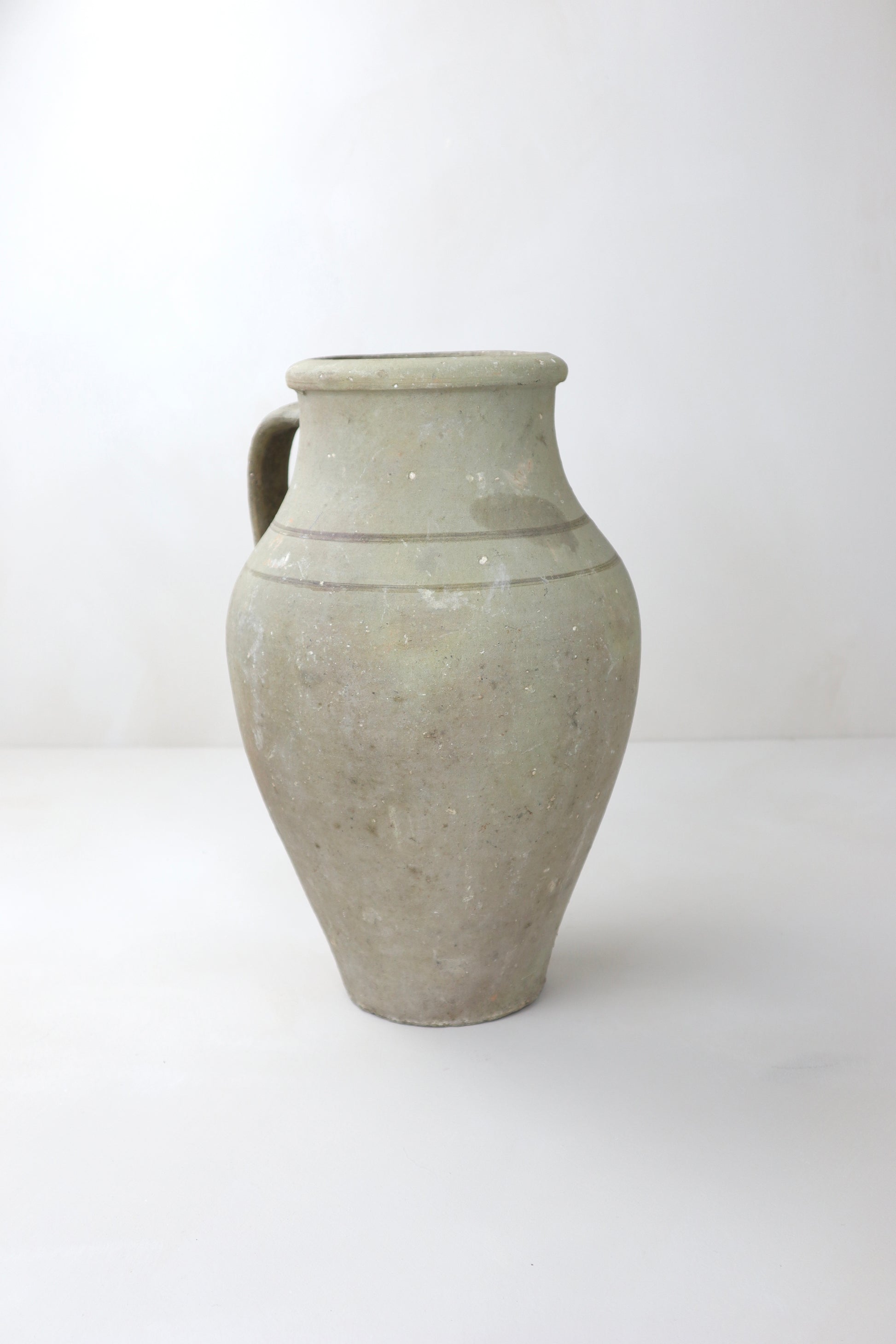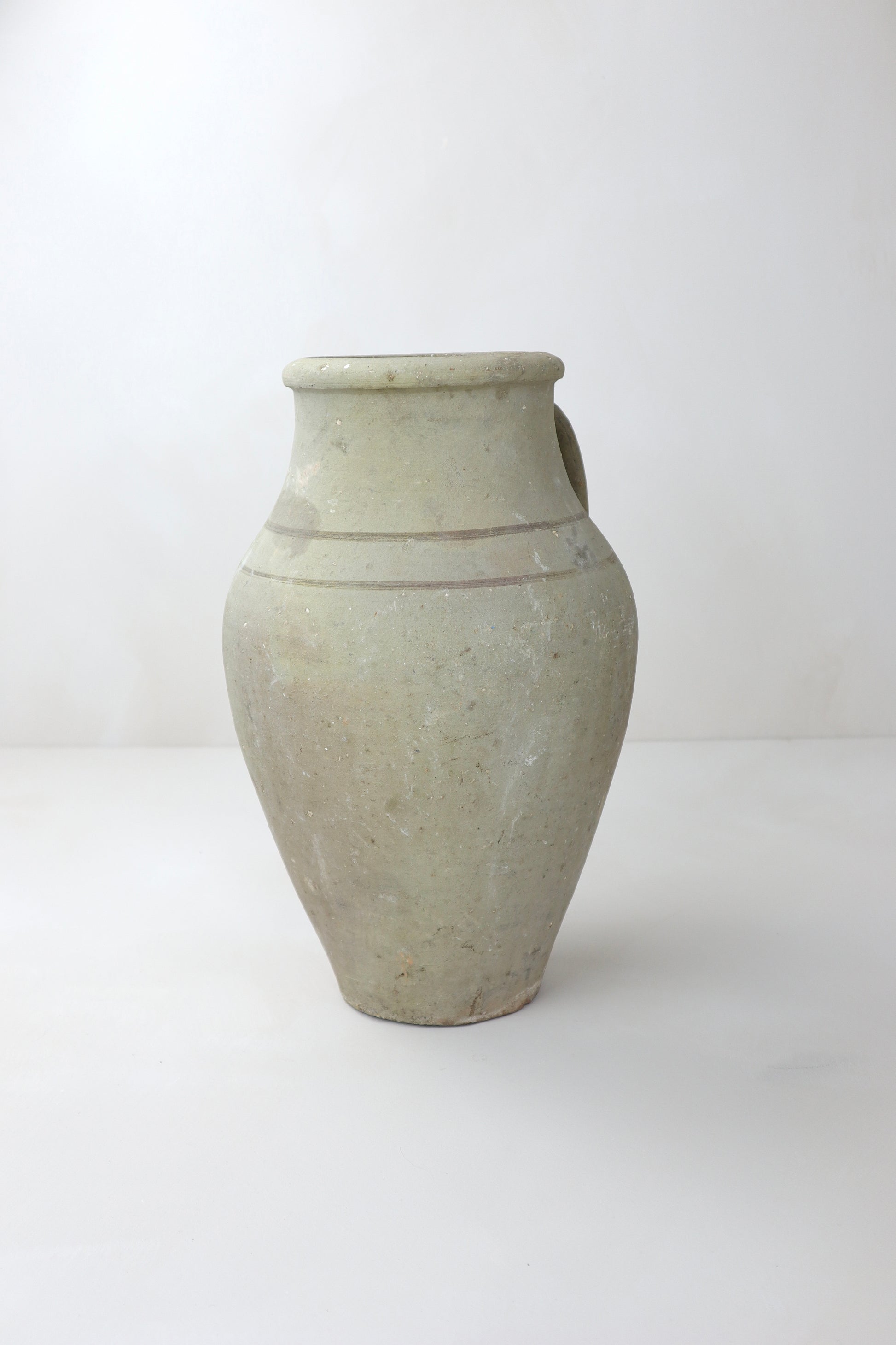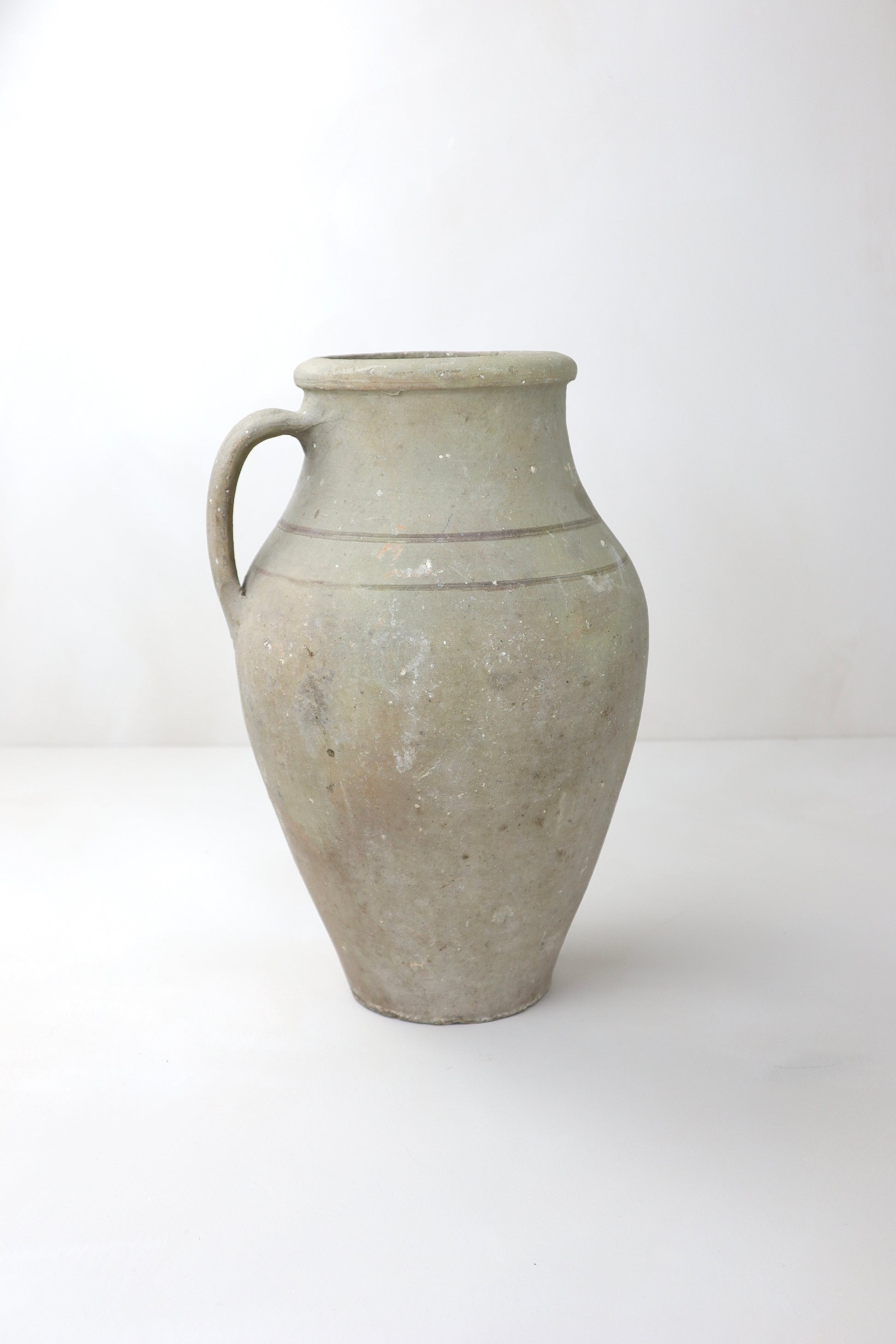 Dating back up to 150 years old, these one-of-a-kind vessels were once used to store foods, water and olive oil. They have naturally weathered over time, gathering layers of sediment, paint and patina.