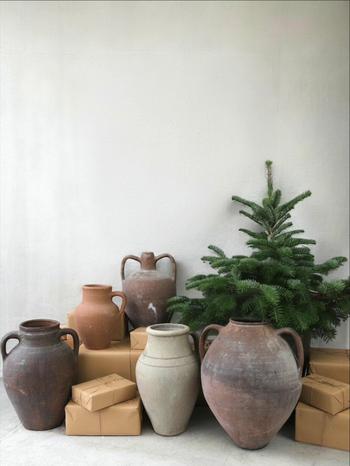 Dating back up to 150 years old, these one-of-a-kind vessels were once used to store foods, water and olive oil. They have naturally weathered over time, gathering layers of sediment, paint and patina.